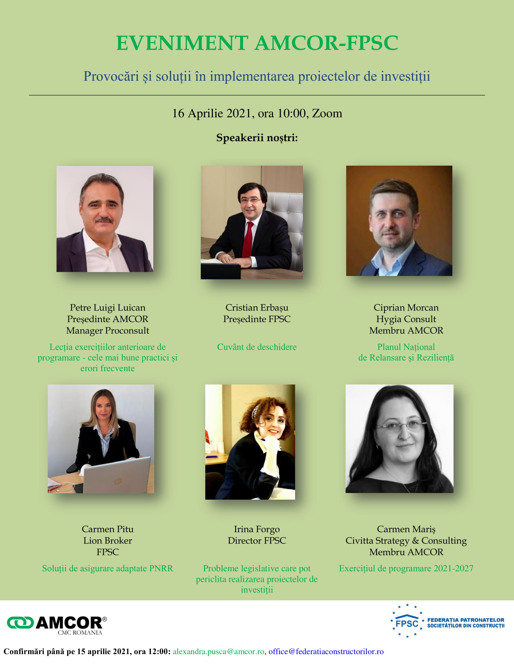 14.04.2021 Conferința AMCOR "Provocări și soluții în implementarea proiectelor de investiții"