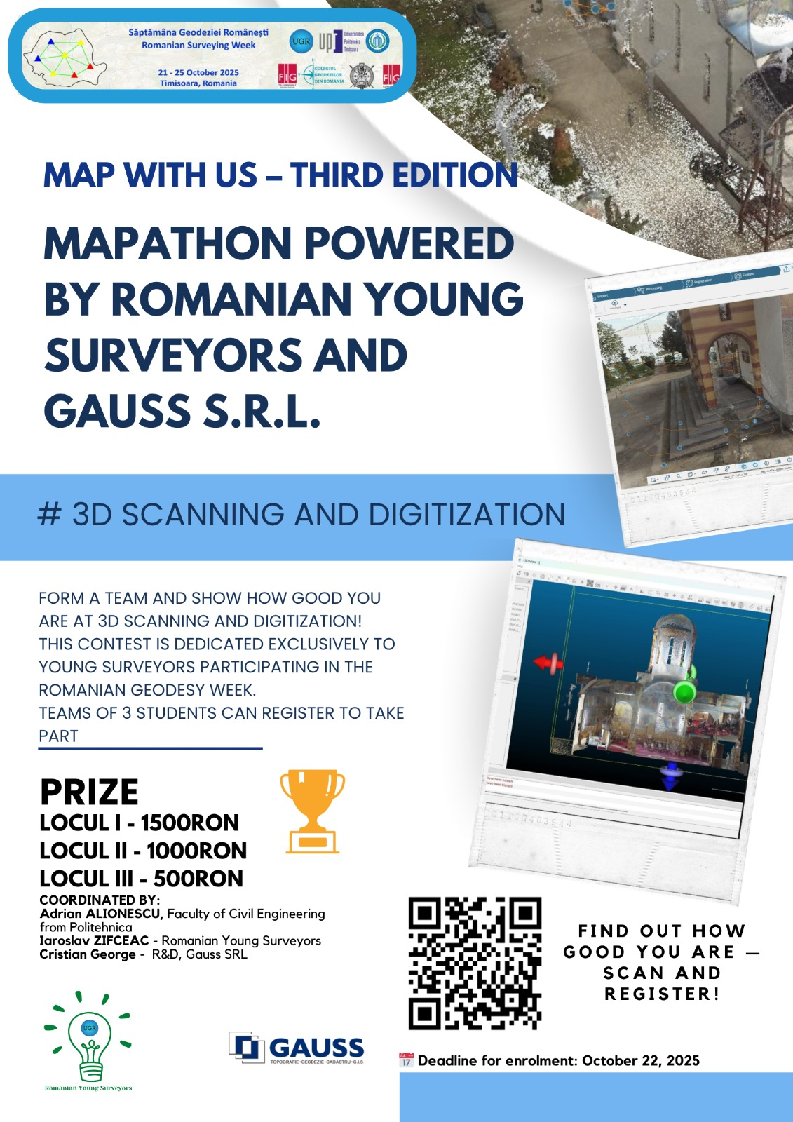 Organizat de către Uniunea Geodezilor din România, evenimentul aflat la cea de-a șasea ediție, se va desfășura în locațiile celor două universități partenere, Universitatea Politehnica Timișoara și Universitatea de Științele Vieții ”Regele Mihai I” din Timișoara!